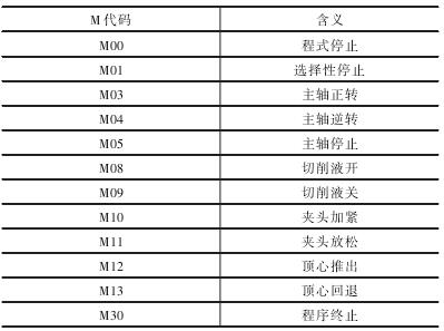 一個(gè)完整的數(shù)控加工程序由開(kāi)始符、程序名、程序加工指令、結(jié)束符等組成。常用的指令有:G 功能(準(zhǔn)備功能)、M功能(輔助功能)、F功能(進(jìn)給功能)、S功能(主軸旋轉(zhuǎn)功能)、T功能(刀補(bǔ)功能)等指令。G功能(準(zhǔn)備功能):使機(jī)床和數(shù)控系統(tǒng)之間建立起某種加工方式的指令,分為模態(tài)代碼和非模態(tài)代碼。M 功能(輔助功能):控制機(jī)床及其輔助裝置的開(kāi)、關(guān)功能的一種命令,如開(kāi)、停冷卻泵;主軸正反轉(zhuǎn)、停轉(zhuǎn);程序結(jié)束;刀具的更換等功能。本文中 FT450 數(shù)控車床數(shù)控程序常用 G 功能、M功能的代碼及含義分別如表1、表2所示。