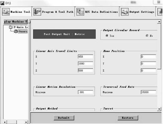 (4)機(jī)床參數(shù)設(shè)置。床自身的數(shù)據(jù)輸入機(jī)床參數(shù),如各軸的極限行程、最大進(jìn)給速率等,如圖4所示。