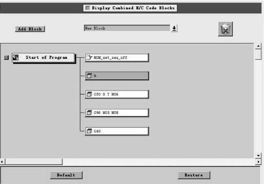 (5)程序和刀軌參數(shù)設(shè)置。定義程序開(kāi)始程序段:此處定義數(shù)控車程序開(kāi)頭部分需要書(shū)寫(xiě)的程序段。在 start of program 程序塊里輸入G40(取消刀具補(bǔ)償),否則會(huì)造成一定的安全隱患,M06實(shí)現(xiàn)自動(dòng)換刀功能,創(chuàng)建過(guò)程如圖5所示。